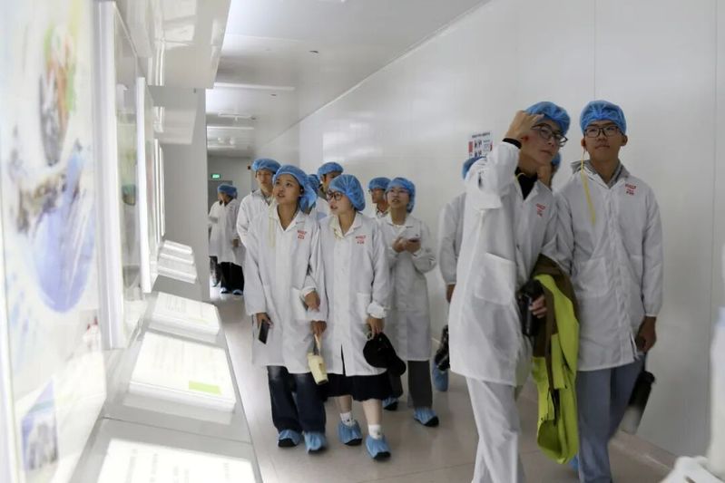 在企业引导员的带领下,健康学子们走进国家AAAA级旅游景区的透明工厂,同学们沿着参观走廊,亲眼目睹了保健食品生产的全过程。从原料仓储到生产线,从质量控制到成品包装,全自动化的智能制造流程和严格的质量监管体系不仅展现了汤臣倍健“透明”的质量理念,也体现了企业对产品质量的自信和担当。