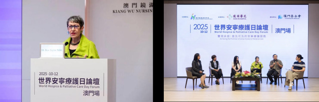 论坛设有多场专题演讲,内容涵盖国际视野、文化背景及实务经验,为与会者带来深刻启发。讲者包括:英国Harlington Hospice 医务总监 Dr. Ros Taylor MBE,以 “生命的有限性” 为题,分享如何以尊严与关怀面对人生终章;清华长庚医院路桂军主任医师,从中华文化视角探讨安宁疗护体系的建设经验;东华三院宝钟全英安老院林洁盈主任,分享香港院舍实现 “居处离世” 的实践案例;澳门镜湖护理学院谭瑰贤助理教授,通过实证研究探讨大湾区居民主观预期寿命对预期照护计划的影响。