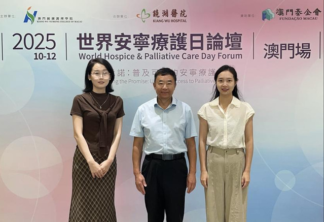 2025年10月12日,2025世界安宁疗护日论坛在澳门镜湖护理学院召开,健康学院党总支书记孟庆勇、护理学系主任钟淑贤及专任老师阿丽亚参加本次论坛。本次论坛由澳门镜湖护理学院与镜湖医院联合主办、澳门基金会资助,以 “实现承诺:普及可及的安宁疗护服务” 为核心主题;作为粤港澳大湾区安宁疗护周的首场活动,论坛旨在促进社会关注、推动实际行动,响应全球同理关怀倡议,致力于在澳门及粤港澳大湾区实现公平、可及的安宁疗护服务。