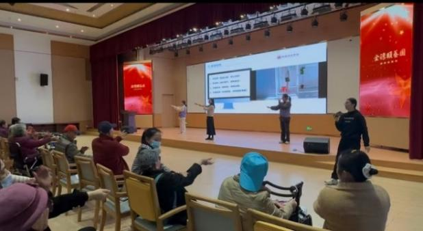 活动还融入特色中医养生内容。防跌倒专场带领长者学习“拍八虚”,通过拍打肘窝、腋窝、腹股沟等部位疏通经络、调和气血;高血压专场教学舒缓易学的“养心降压操”,动作简单、效果直观,深受现场长者欢迎。